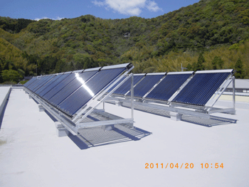 エネルギーコストを気にせずに、ふんだんにお湯をつかいたいという要望で授産施設の給湯設備に「ソーラーハイブリットシステム」を採用していただきました。